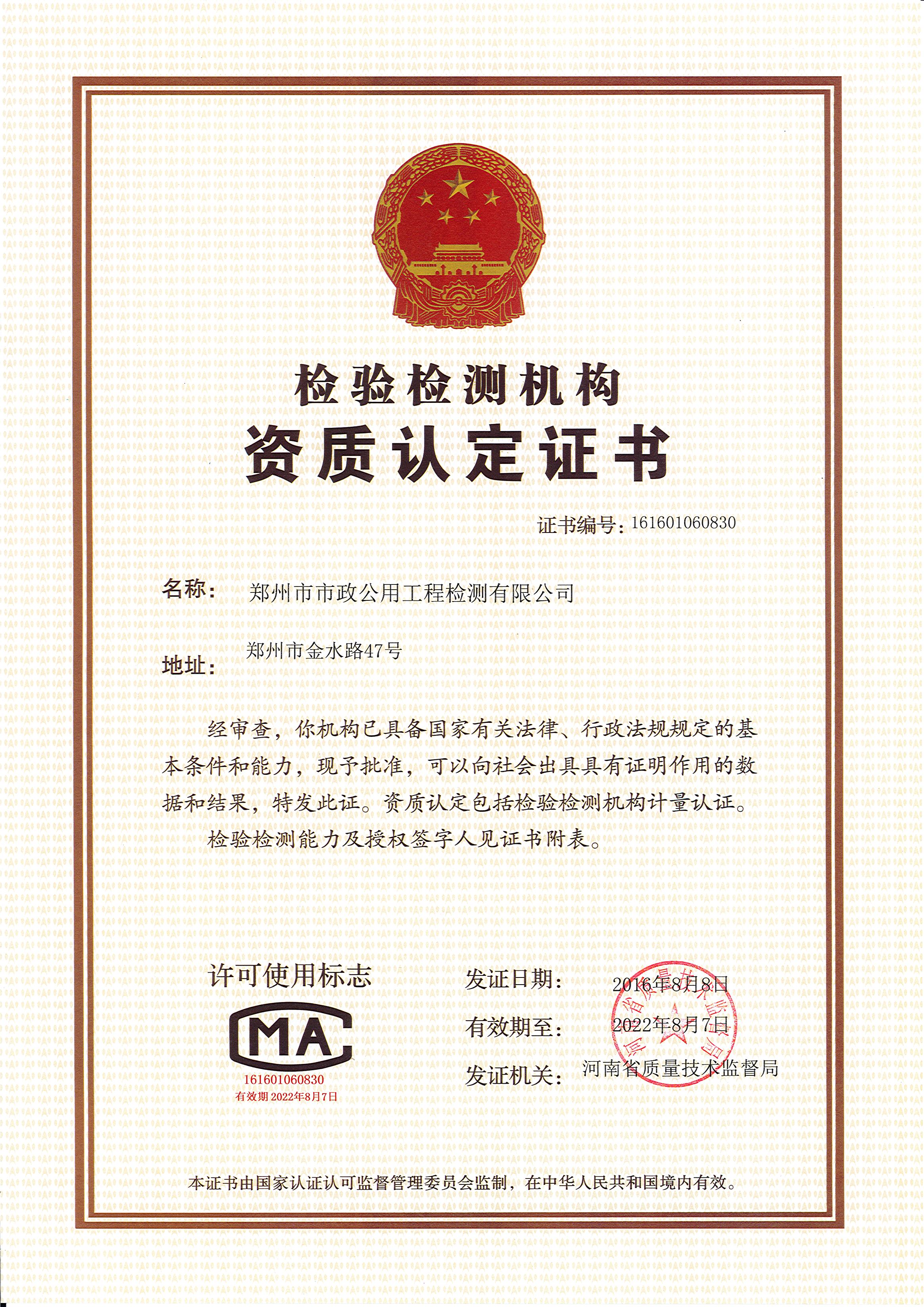©2003-2015鄭州市市政公用工程檢測(cè)有限公司 版權(quán)所有,并保留所有權(quán)利